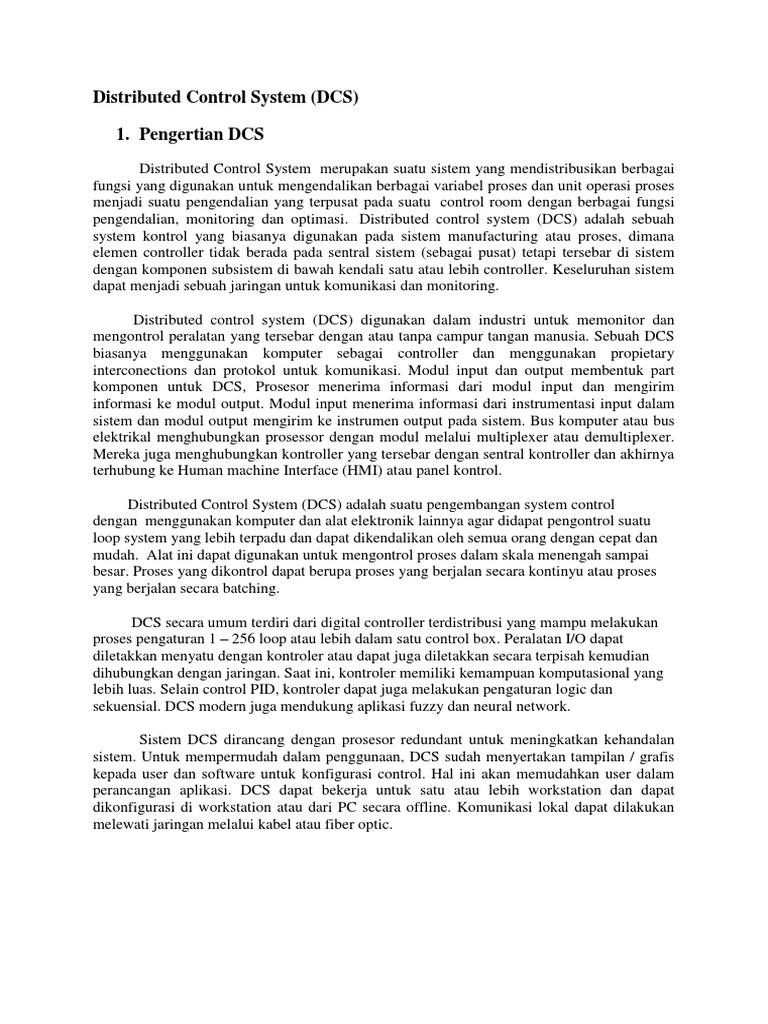 Distributed Control System (DCS) adalah suatu pengembangan system control