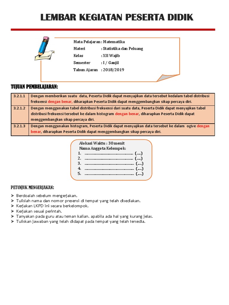distribusi frekuensi tersebut ke dalam histogram dengan benar, diharapkan Peserta Didik dapat