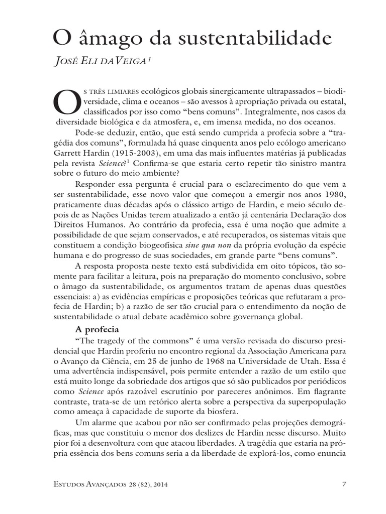 praticamente duas décadas após o clássico artigo de Hardin, e meio século de-