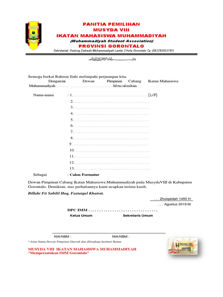 Perihal : Permintaan Calon Formatur dan Ketua Umum