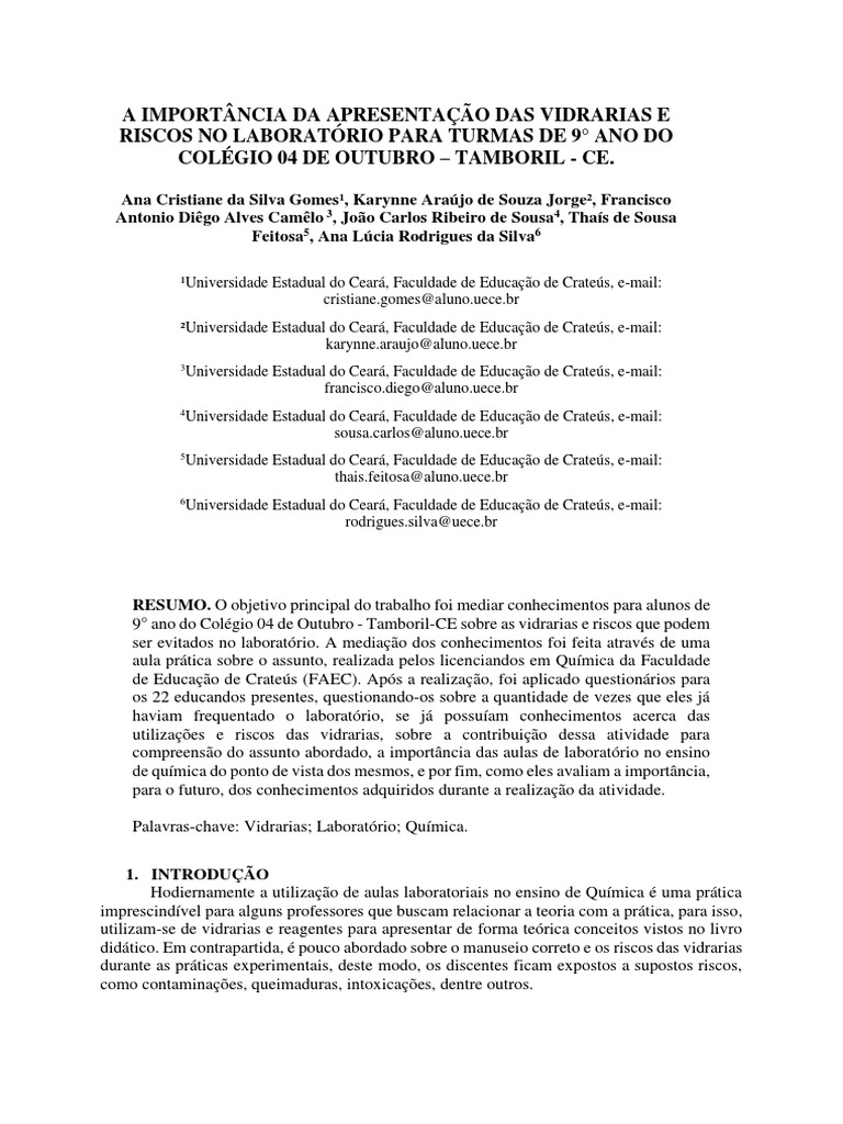 relação ao uso dos materiais laboratoriais. Tendo o exposto em vista, licenciandos de Química
