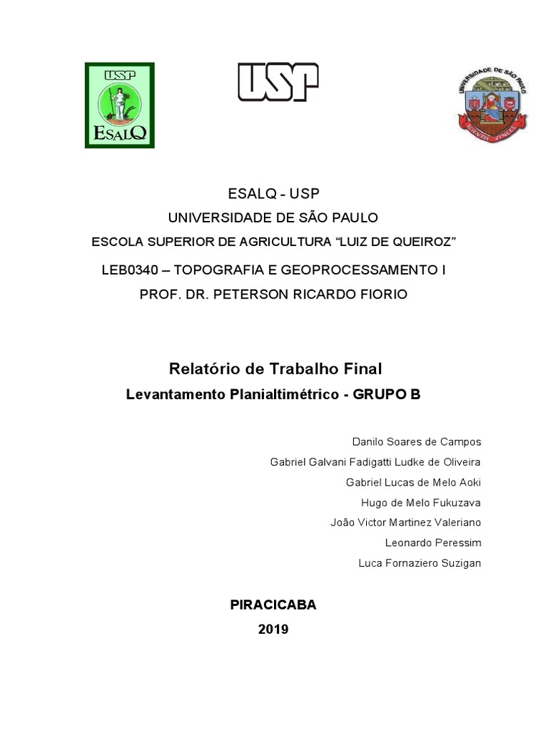 No memorial descritivo a seguir foram adotadas todas as recomendações sugeridas e foram utilizados os materiais disponíveis para a realização das aulas práticas, onde os estudantes elaboraram um mapa topográfico fechando uma poligonal base contendo as curvas de níveis, na região próxima ao edifício do prédio central dentro das dependências da ESALQ/USP.