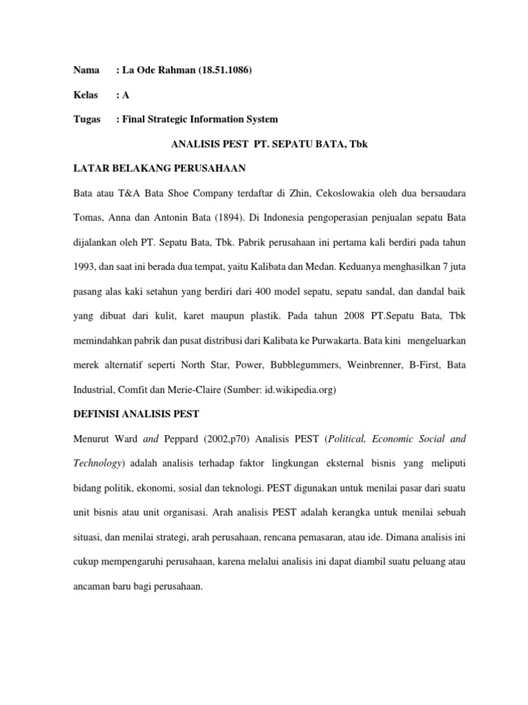 ANALISIS PEST PT. SEPATU BATA, Tbk