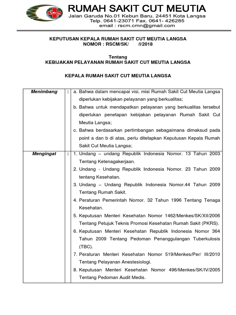 Menimbang : a. Bahwa dalam mencapai visi, misi Rumah Sakit Cut Meutia Langsa