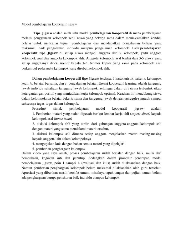 Model pembelajaran kooperatif jigsaw