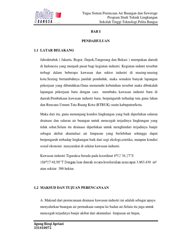 A. Maksud dari perencanaan drainase kawasan industri ini adalah sebagai upaya