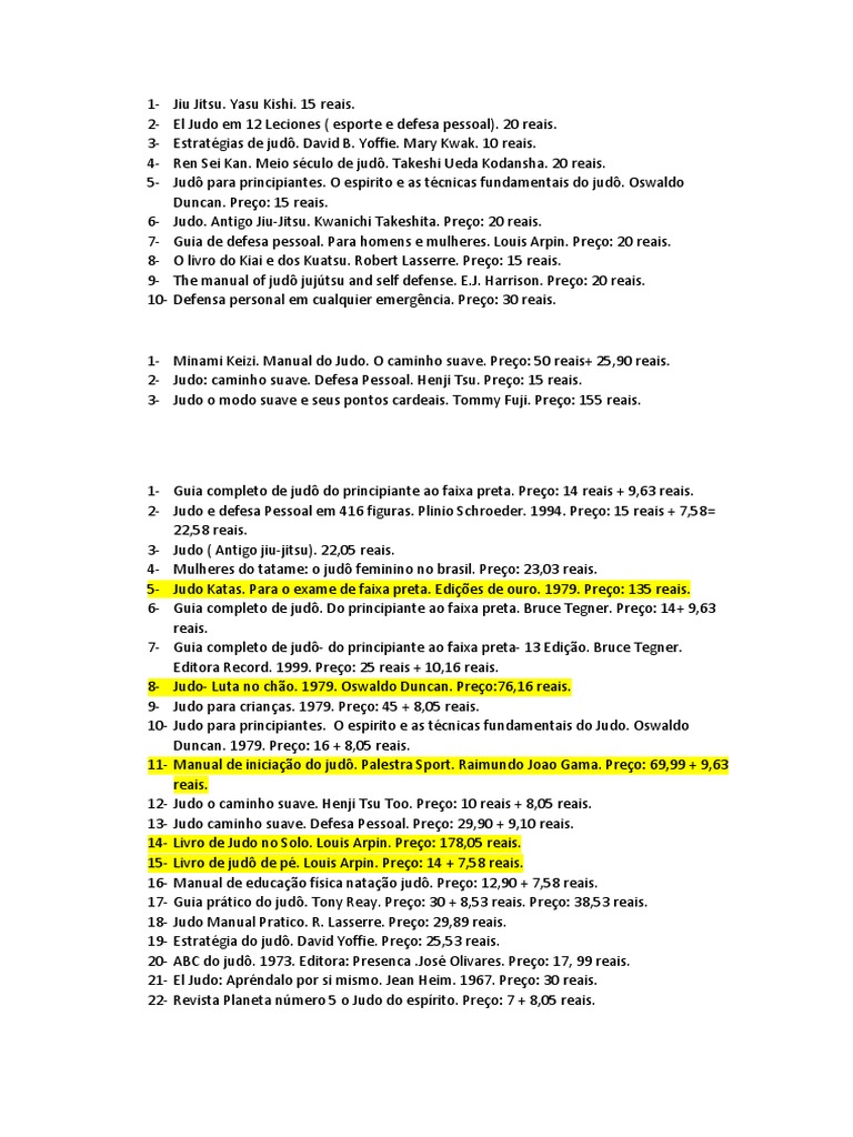 1- Guia completo de judô do principiante ao faixa preta. Preço: 14 reais + 9,63 reais.
