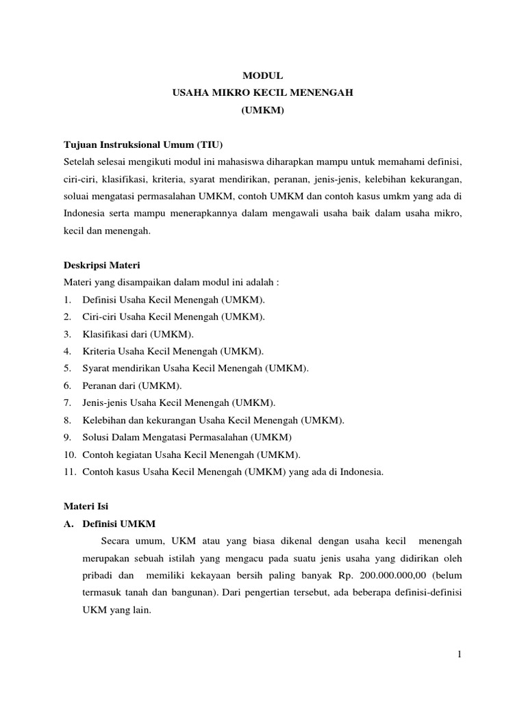 1. Definisi Usaha Kecil Menengah (UMKM).