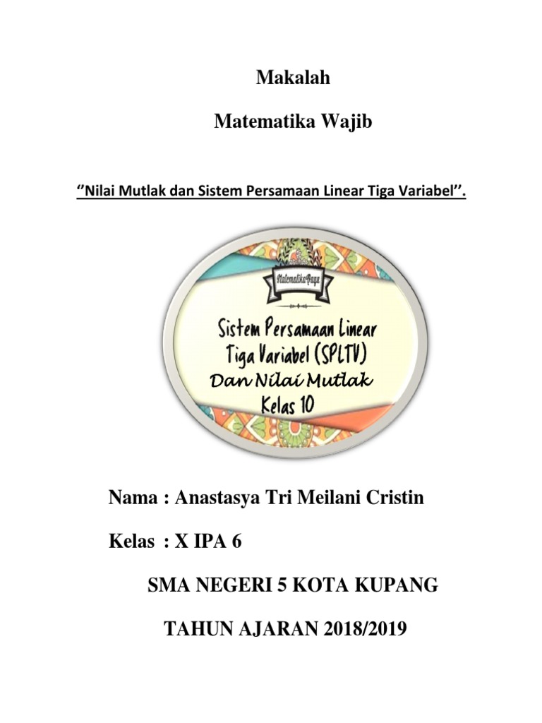 Mutlak dan Sistem Persamaan Linear Tiga Variabel, dalam bagian makalah ini dibahas