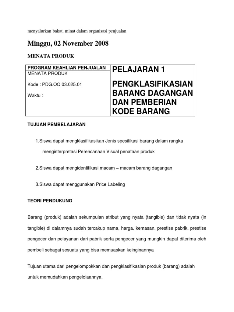 Kode : PDG.OO 03.025.01 BARANG UNTUK