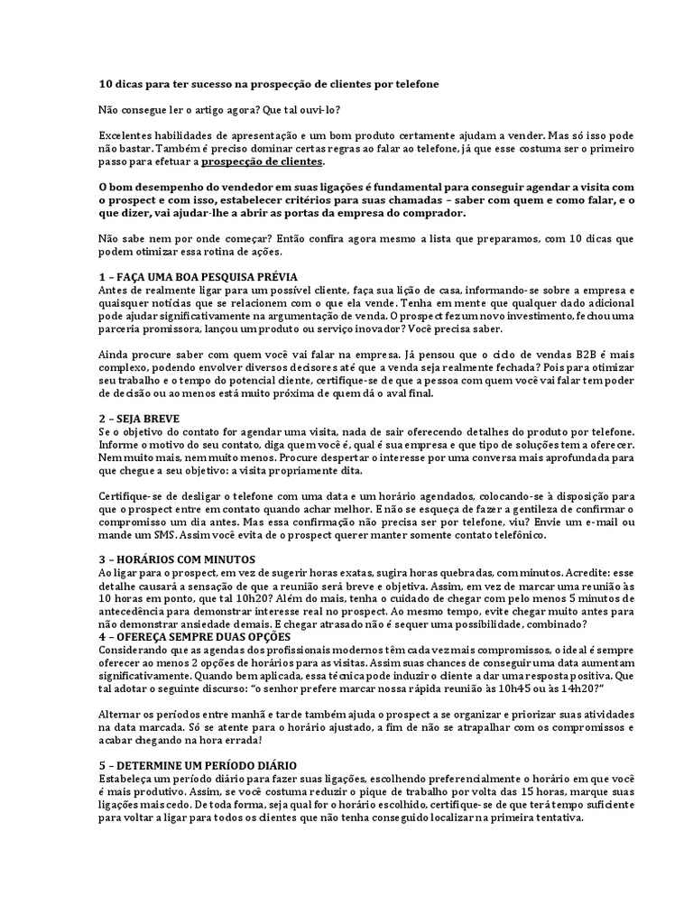 com você, fazia algum tempo que estava tentando”. Valorizar o prospect é uma ótima maneira de começar o