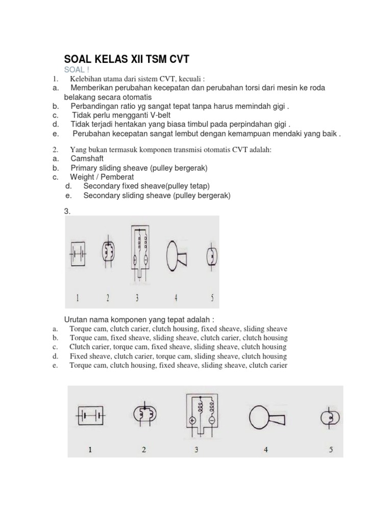 2. Yang bukan termasuk komponen transmisi otomatis CVT adalah: