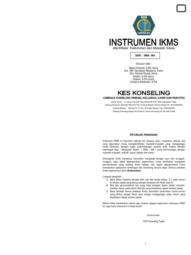 Instrumen IKMS ini bukanlah sebuah tes ataupun ujian, melainkan sebuah alat