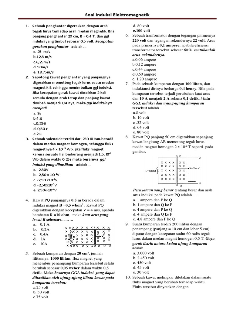 Soal Induksi Elektromagnetik