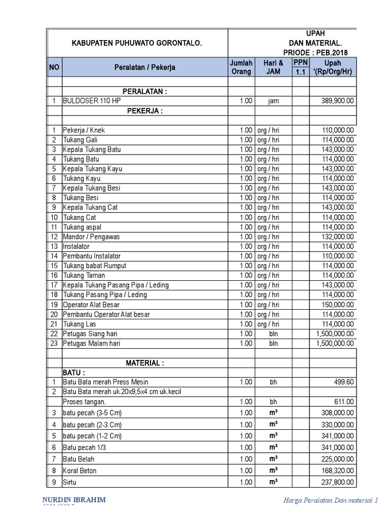 Daftar Harga Peralatan dan Material Puhuwato