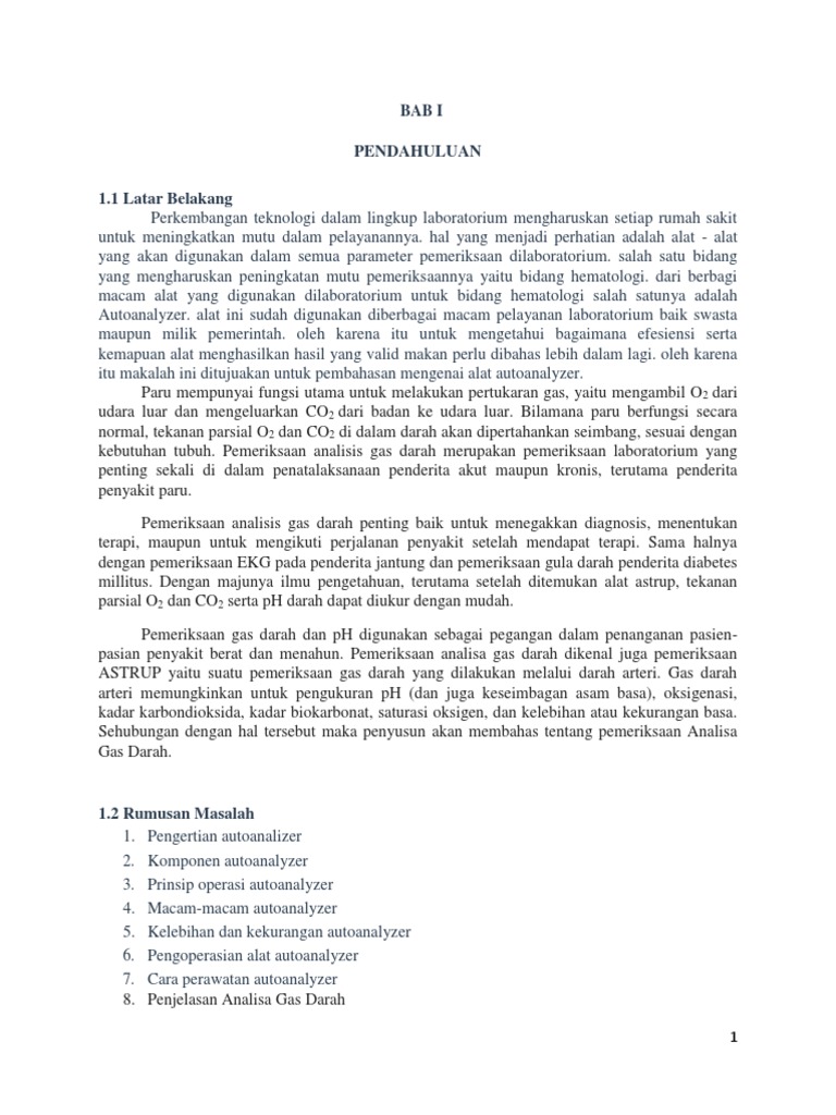 5. Untuk mengetahui cara pengoperasian dan perawatan alat autoanalyzer