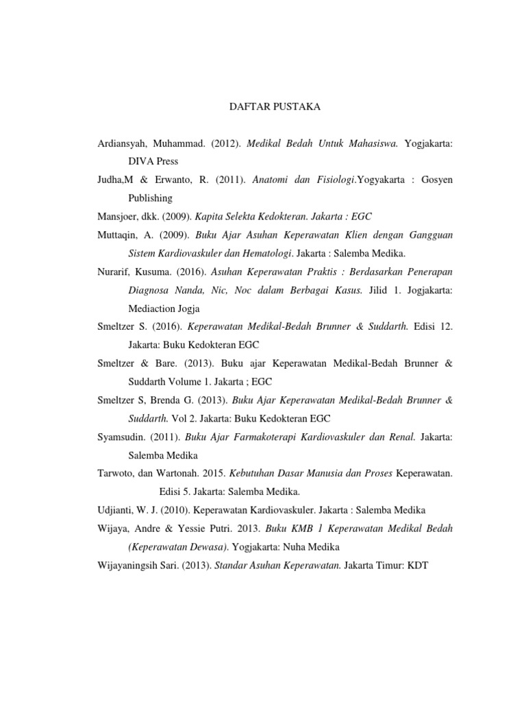 Ardiansyah, Muhammad. (2012). Medikal Bedah Untuk Mahasiswa. Yogjakarta:
