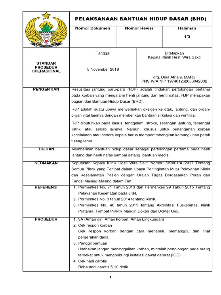 PELAKSANAAN BANTUAN HIDUP DASAR (BHD)