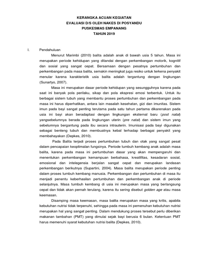 daya manusia, dan merupakan lini terdepan dari deteksi dini tumbuh kembang balita