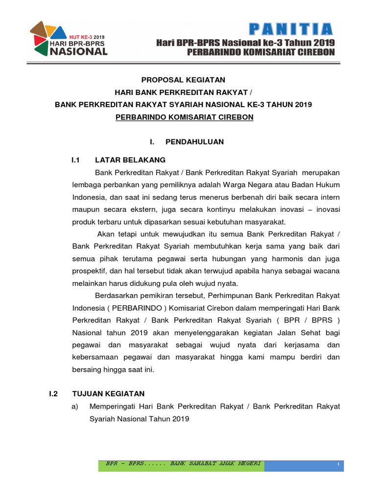 Demikian proposal kegiatan Hari Bank Perkreditan Rakyat / Bank Perkreditan