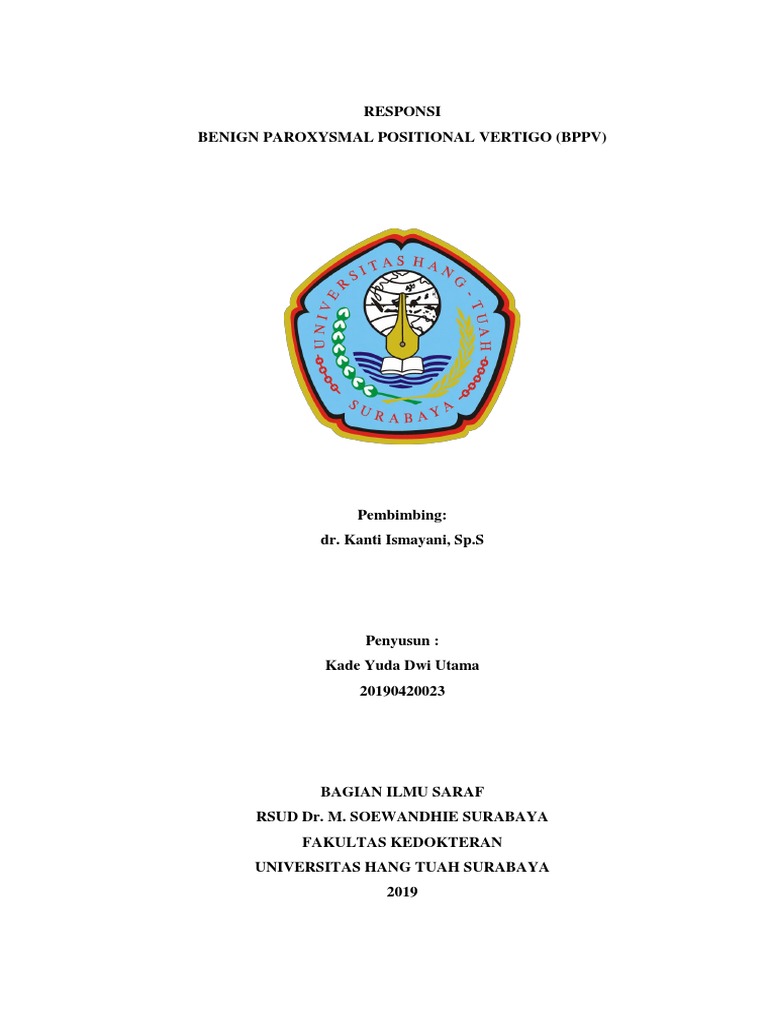 Diagnosis Etiologis : Benign paroxysmal positional vertigo (BPPV)