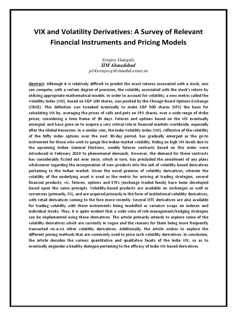 eventually engender a healthy dialogue pertaining to the efficacy of India VIX-based derivatives.