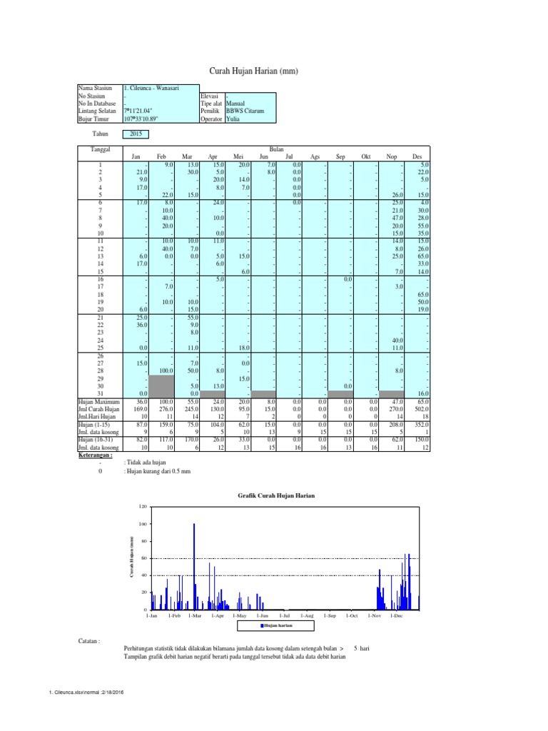 Tampilan grafik debit harian negatif berarti pada tanggal tersebut tidak ada data debit harian