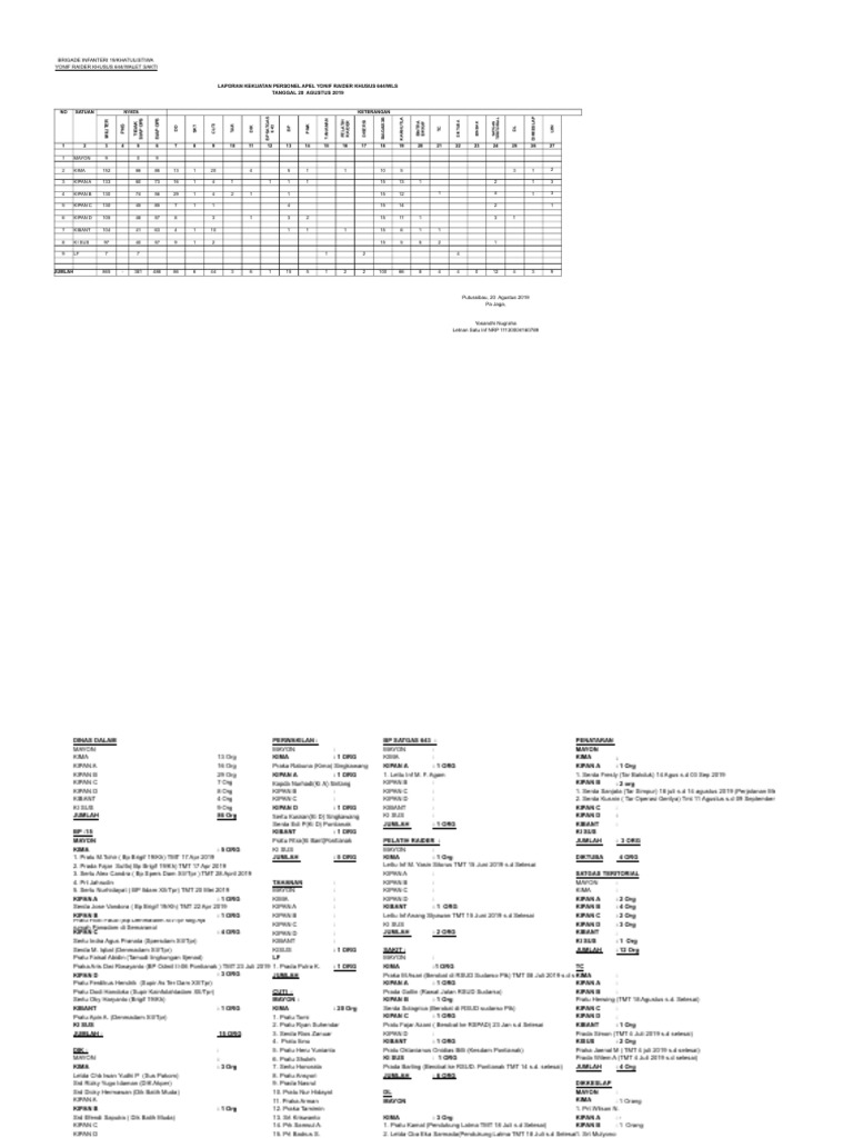 Serda Jose Vandora ( Bp Brigif 19/Kh) TMT 22 Apr 2019 KIPAN A : KIBANT : 1 ORG KIPAN B : 4 Org