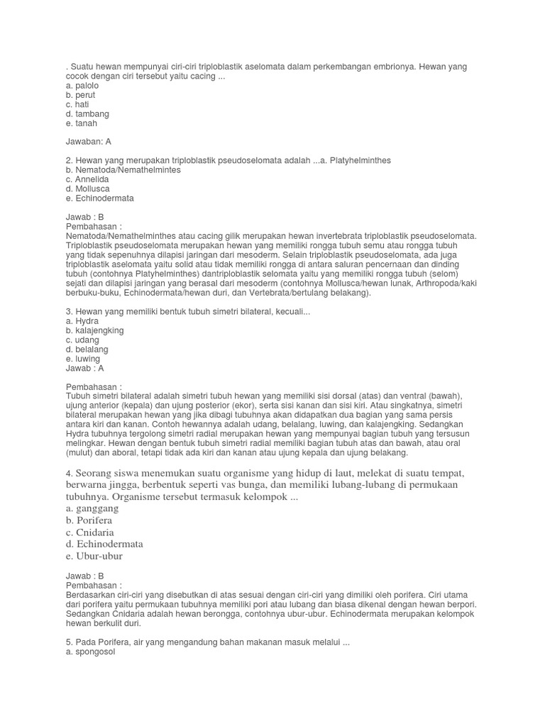 Silahkan buka juga : 70 Soal Pilihan Ganda Materi Hewan Invertebrata dan Kuci Jawaban