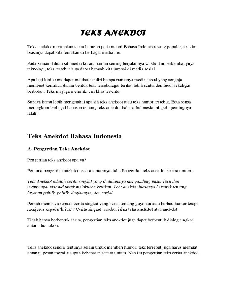 Teks Anekdot Bahasa Indonesia