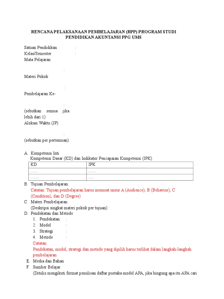 RENCANA PELAKSANAAN PEMBELAJARAN (RPP) PROGRAM STUDI
