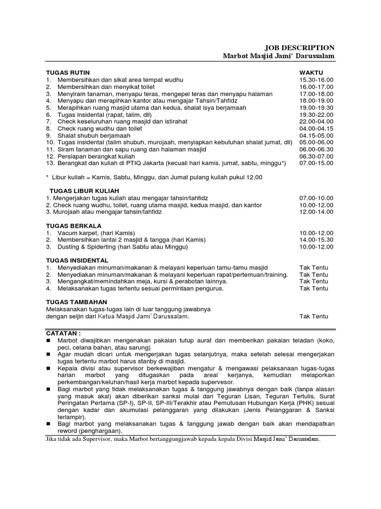 Jika tidak ada Supervisor, maka Marbot bertanggungjawab kepada kepala Divisi Masjid Jami’ Darussalam.