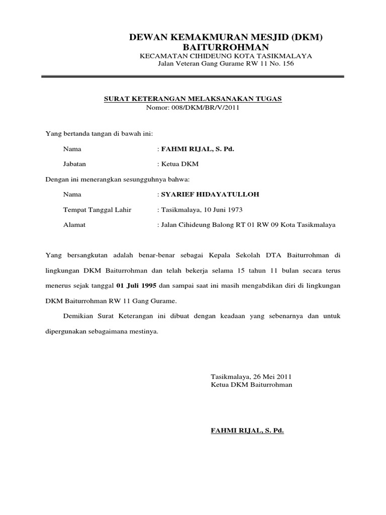 SURAT KETERANGAN MELAKSANAKAN TUGAS