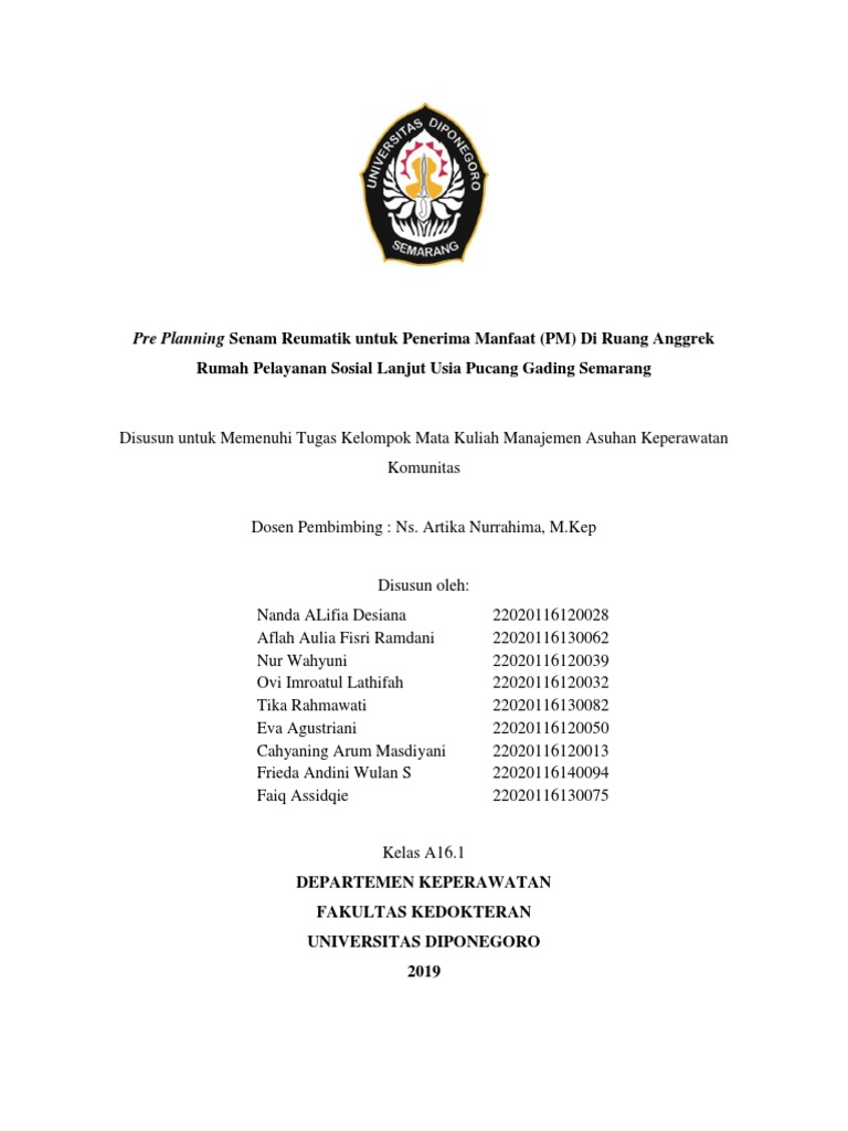 Disusun untuk Memenuhi Tugas Kelompok Mata Kuliah Manajemen Asuhan Keperawatan