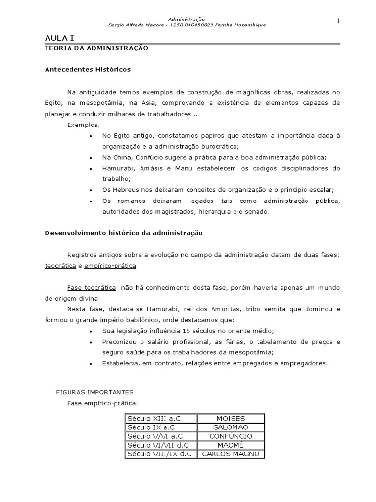 Registros antigos sobre a evolução no campo da administração datam de duas fases: