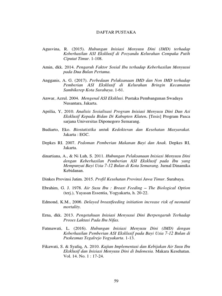 Roesli, Utami . 2005. Inisiasi Menyusu Dini plus ASI Eksklusif . Jakarta: Pustaka