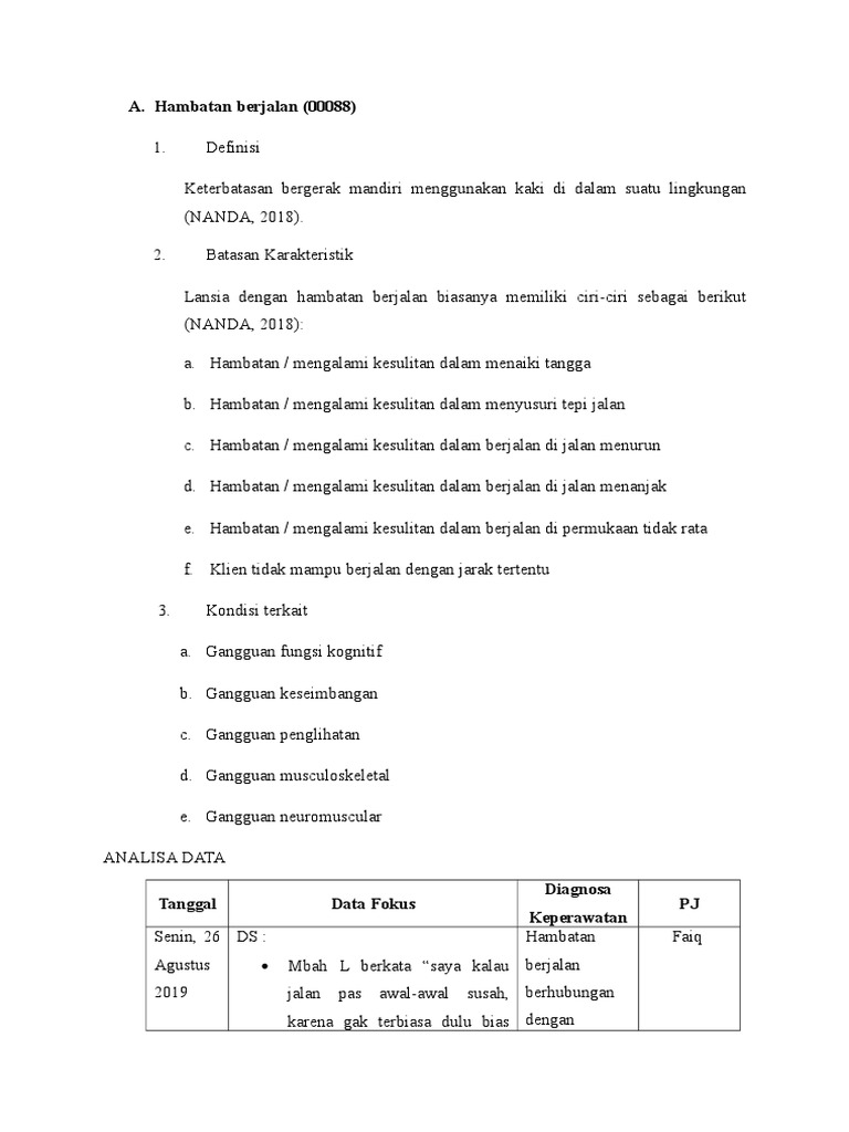 Cara berjalan (0222) pakai.ajarkan pasien bagaimana jika jatuh,