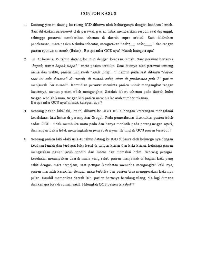 dan kenapa bisa di rumah sakit. Hitunglah GCS pasien tersebut ?