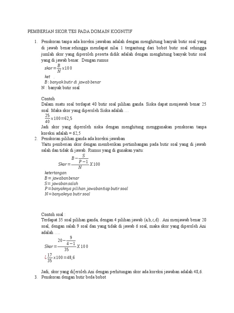 1. Penskoran tanpa ada koreksi jawaban adalah dengan menghitung banyak butir soal yang