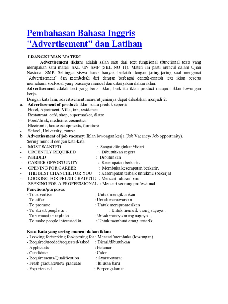 “Advertisement” dan membekali diri dengan berbagai contoh-contoh text iklan beserta