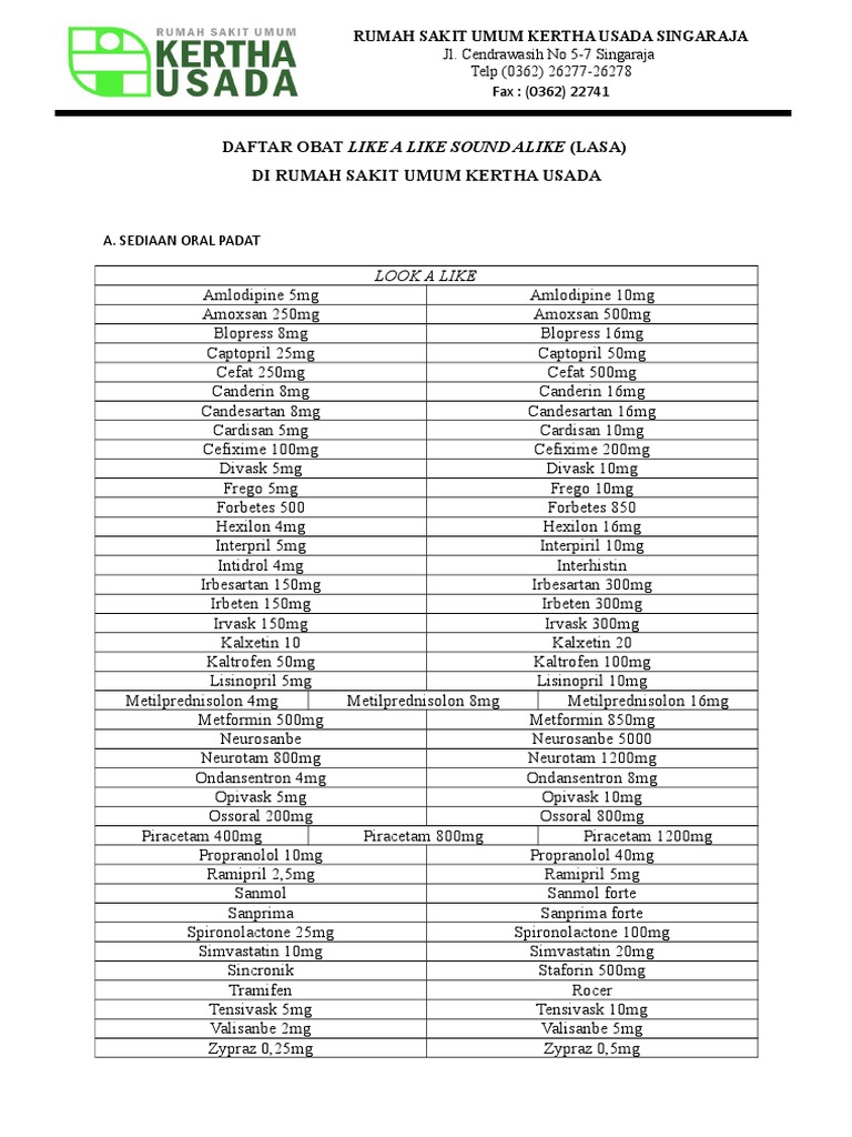 DAFTAR OBAT LIKE A LIKE SOUND ALIKE (LASA)