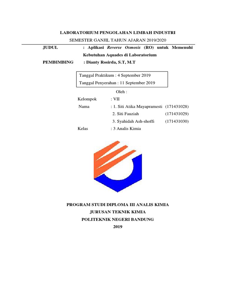 Aplikasi Reverse Osmosis untuk Aquades