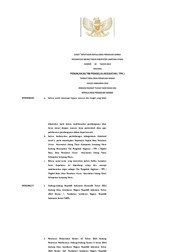 SURAT `KEPUTUSAN KEPALA DESA PERADUAN WARAS
