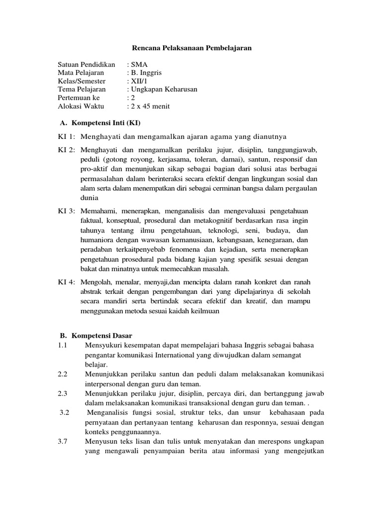 KI 1: Menghayati dan mengamalkan ajaran agama yang dianutnya