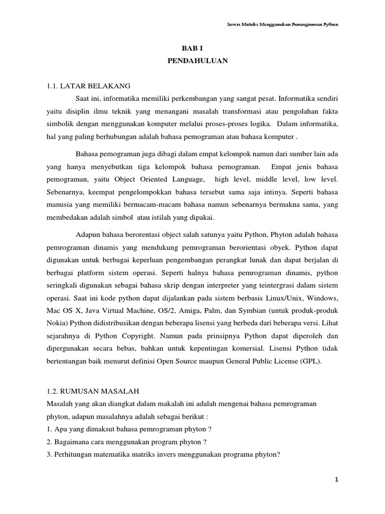 3. Perhitungan matematika matriks invers menggunakan programa phyton?