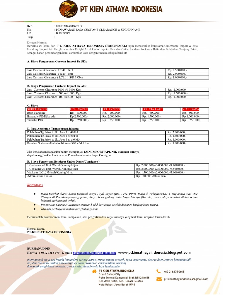 Hal : PENAWARAN JASA CUSTOMS CLEARANCE & UNDERNAME