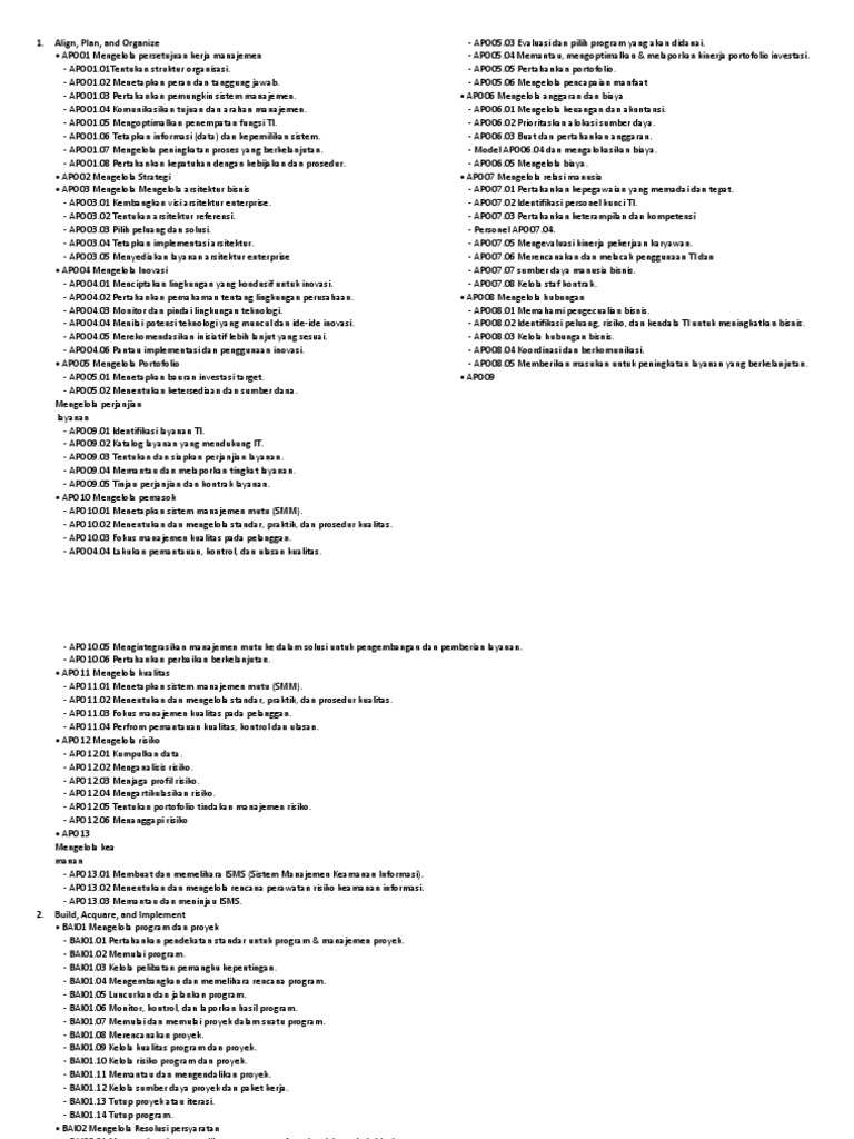 - APO03.05 Menyediakan layanan arsitektur enterprise - APO07.06 Merencanakan dan melacak penggunaan TI dan