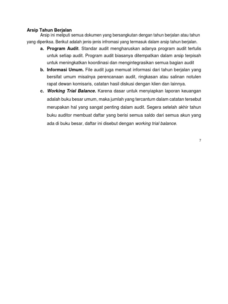 yang diperiksa. Berikut adalah jenis-jenis infromasi yang termasuk dalam arsip tahun berjalan.
