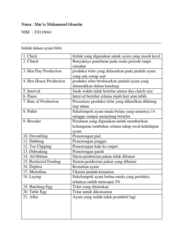 8. Pullet Sekelompok ayam muda betina yang umurnya 14