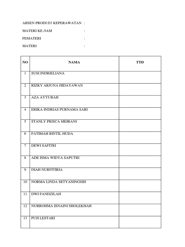 ABSEN PRODI D3 KEPERAWATAN :